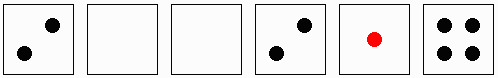 6つの面に下の図のような6つの目(実際には4つの目)が描かれたサイコロは全部で何種類作ることができるでしょうか?