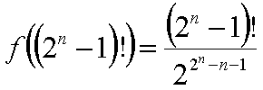 n f((2n-1)!) mod 2n+1 11 mod 2n+1 2n-1 2n+1 1 1 3 1 4 2 3 3 3 8 3 11 11 7 16 4 11 11 15 32 5 11 11 31 64 6 11 11 63 128 7 139 11 127 256 8 139 11 255 512 9 651 11 511 1024 10 1675 11 1023 2048 11 1675 11 2047 4096 12 5771 11 4095 8192 13 5771 11 8191 16384 14 5771 11 16383 32768 15 5771 11 32767 65536 16 71307 11 65535 131072 17 71307 11 131071 262144 18 333451 11 262143 524288 19 857739 11 524287 1048576 20 1906315 11 1048575 2097152なお、