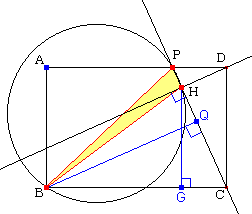 そこで交点をQとすると、四角形PBQHの対角の和はπになります。