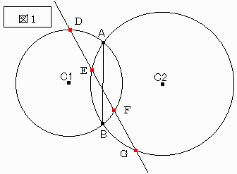 従って,必ずその途中に円C1上の点となるFが存在する。