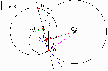 この時の点Eの位置E2は円C2とC1Bを直径とする円の交点であり、