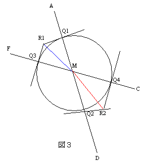 R1Mは∠Q1MQ3をR2Mは∠Q2MQ4を明らかに二等分するから、R1,M,R2は1直線上である。