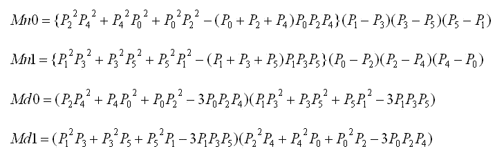 fX(P0, P5, P3, P4) - fX(P1, P4, P2, P5)