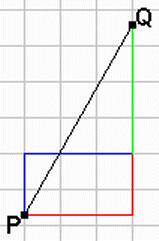 (1) P,Qの、一方が縦の格子線上にあり、もう一方が横の格子線上にあるとき