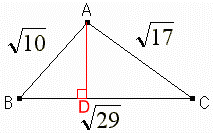 Aから辺BCへ垂線をおろし、その交点をDとする。