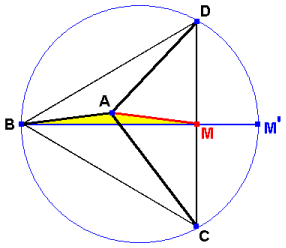 辺CDの中点をM、BMの延長線と△BCDの外接円との交点をM'とすると、