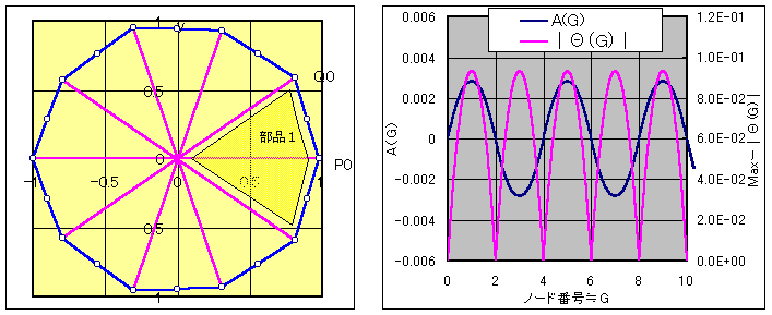 下図は各部品の辺の偏角を数値計算した結果であり。単調に増加しており、凸図形であることが分かる。