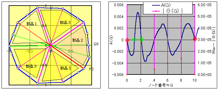 一方、赤の線のところでは、部品2に変えることにより、A(G)がV字型の変化をします。