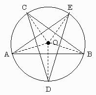 だから「頂点の一つが出発点となるように、円に内接する正五角形を設定すると、その正五角形の五本の対角線が軌道となる」 ・・・といったところでしょうか。