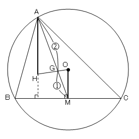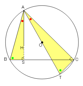 図1のようにAHの延長とBCとの交点をS,頂点Aを通る直径をATとすると、