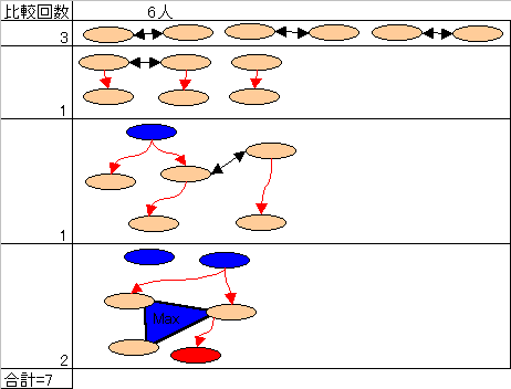 1人づつ選出し、その人と既に選出済みの人の数人と対戦していく。