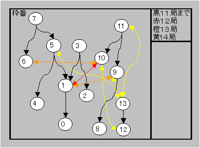 ○ ○ | | ◎ ◎ | | ○ ○そこで、上の図の◎同士で対局します。(7対局目)