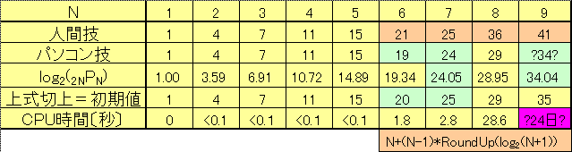 N=6の場合も、念のため改良タイプで計算したら驚きの19回でした。