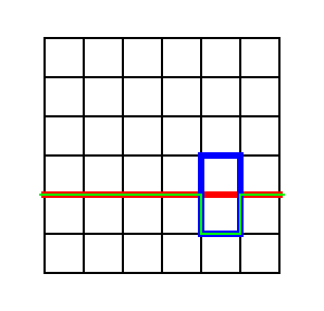 分断線が存在しないということは、赤線が青枠のような長方形を横切るということ。