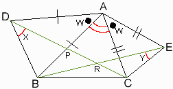 またABとDCの交点をP、ACとBEの交点をQ、DCとBEの交点をRとする