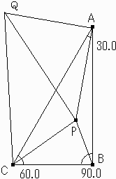 ∠BPC+∠APB+∠APC=360°から、∠APCを求めるものでした。