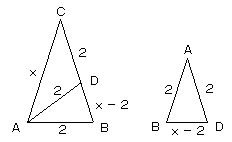 よって、三角形ADBも二等辺三角形となり、AB=2となる。