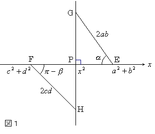 いま x 軸上に3点 E(a2 + b2, 0), F(c2 + d2, 0), P(x2, 0) を,