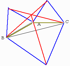 この3角形は、∠AQB=∠BQC=∠CQA=120゜ より正三角形である。