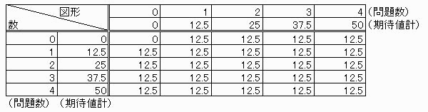 これによると「図形問題0問、数の問題1問または2問」(期待値25)が一番効率がいいようです。