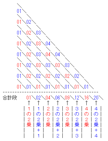 面積2x2(4)の数は,1+2+・・・・ (n−1)/2
