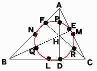 すなわち9点L,M,N,D,E,F,P,Q,Rは同一円周上にある
