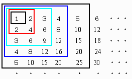 このように等差数列を正方形に配置して、各正方形内の数の和をS(n)とおく。