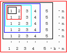 そこで、n番目の正方形を考えてみると、第1行の数の和R(1)は