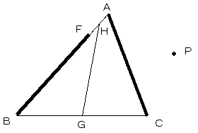 AB=ACの時は、点PからBCに平行な線を引けばいいので、AB>ACとします。