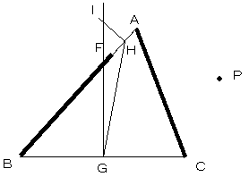 辺AB上に、BF=ACとなる点Fをとり、BCの中点GとAFの中点Hを結びます。