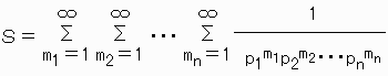 | S=1/ | n Π i=1 | (1- | 1 ―― pi | ) | = | n Π i=1 | (1+ | 1 ―― pi | + | 1 ―― pi2 | +・・・) |