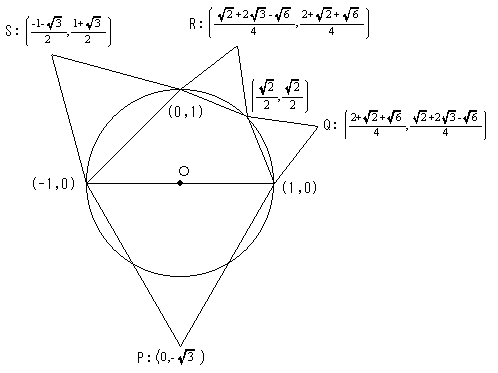 図のように単位円上に4点