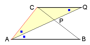 ∠Aの二等分線と辺BCとの交点をP、引いた平行線との交点をQとします。