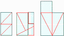 正方形単位で分割・結合すれば、問題は正方形の個数のみに依存するので、問題図の第1、2、6を考えればよいが、それは下図の赤線の分割により得られる.