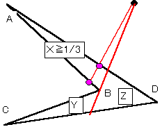 ∵ 下図のように分割線を凹点Bを通る臨界状態に引いたときにできる3つの三角形の面積をX,Y,Z
