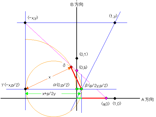 ただし、0≦p≦1は長さ比として幾何学的に作図可能な実数値、ないし既に幾何学的に長さ比として与えられているとする。