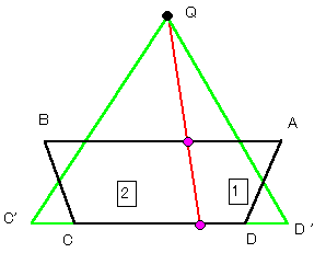 従って、△QC'D'を1:2に分割するQを通る線分は元の4角形を1:2に分割する。