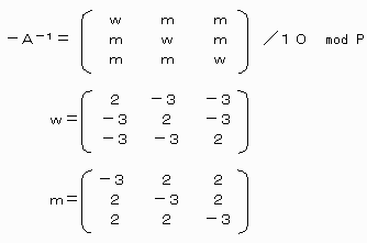 従って、Pが2(104回の場合)または5の倍数でなければ、Aの逆行列が存在する。