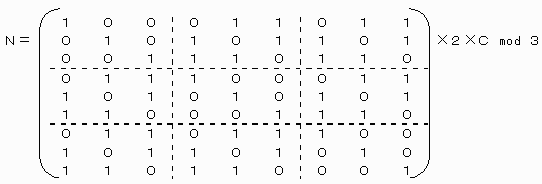 N=[0,2,0,0,2,0,2,0,2]t である。すなわち