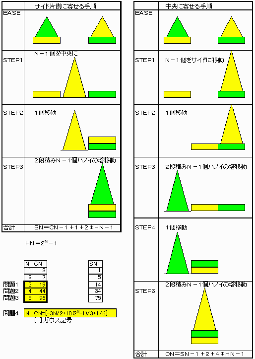 普通のハノイの塔の最小手数をHNとするとき、必然の手順は下図である。即ち