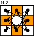 なお、空白だけを移動することが目的の場合、N=5の色付矢印で示される「近道」をすることで,手数の削減が可能。