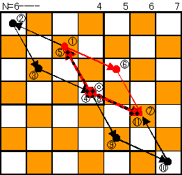 従って、この回廊を空白が一巡するたびに騎士は逆方向に1個づつ必ずずれるので、いずれ黒騎士も反対側に到達する。