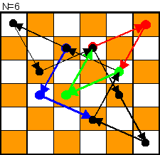 一般に、(1.1)と(n.n)を通る桂馬跳びでつないだループができれば、巡回置換によって題意は達せられることに注意する。