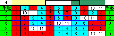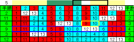 1 2 3 4 5 6 7 8 910111213 ============================ |A|B|A|B|A|B|A|B|A|B|A| | | ============================ |A|B|A|B|A|B| | |A|B|A|A|B| 1 |A|B|A| | |B|B|A|A|B|A|A|B| 2 |A|B|A|A|A|B|B|A|A|B| | |B| 3 |A|B|A|A|A| | |A|A|B|B|B|B| 4 |A|B|A|A|A|A|A| | |B|B|B|B| 5 | | |A|A|A|A|A|A|B|B|B|B|B| 6【おまけ】