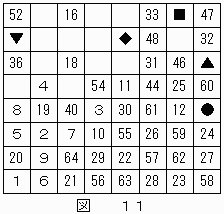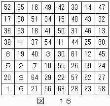 4k−2(kは整数,1≦k≦16)番目にナイトが通ったことがわかる。