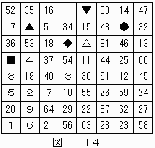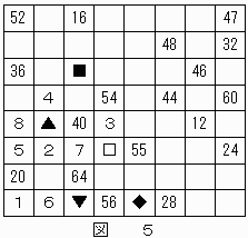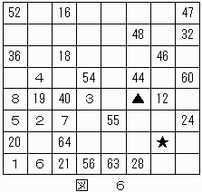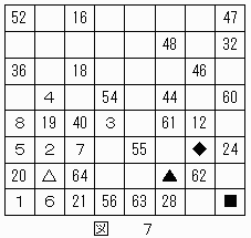 したがって、★のマス目は"62"に決定する。これによって、▲は"61"に決定する。