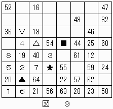 ところが、▽は"51"または"53"であり、▲が"9"だとすると★が"37"に決定しているため"10"の数字が記される可能性のあるマス目が存在しなくなってしまう。