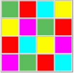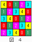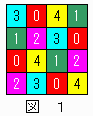 これらの場合について、4行×4列すべてのマス目の色の塗り方を図1および図2に示す。