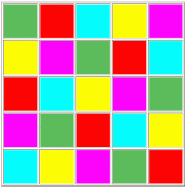 (1,2),(2,1),(2,2),(2,3),(3,2)の色はすべて異なるので、これらのマス目の色番号をそれぞれ、
