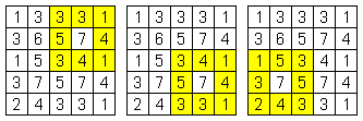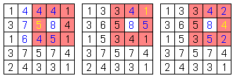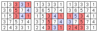 ところで、上の左2つの図では、どちらの図にも[1のあるマス]が2個存在します。